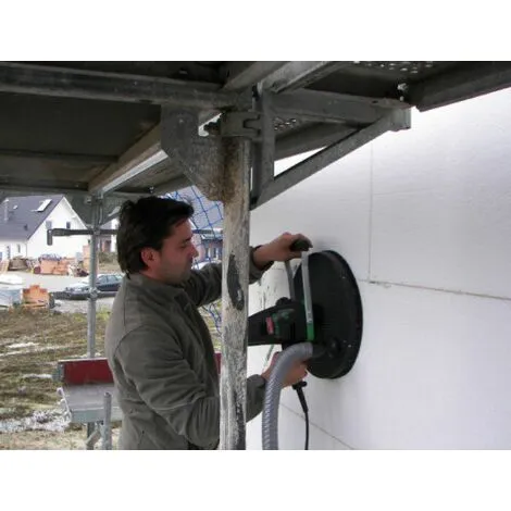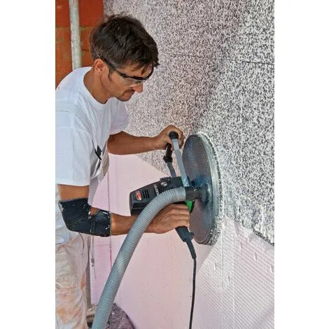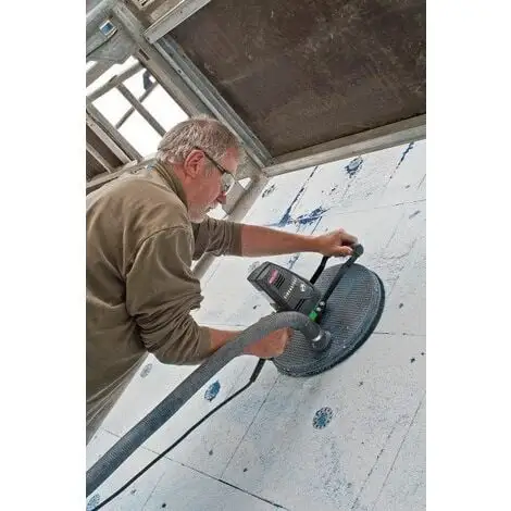Aspiration par capot avec anneau de brosse et disque de ponçageperforé – réduit les particules de ponçage qui volent, économise du temps de nettoyage du chantier