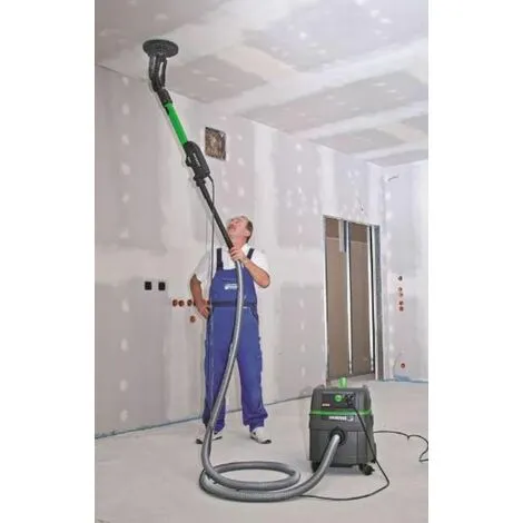 – seulement environ 1,5 kg de feutre à retenir (uniquement en liaison avec les aspirateurs industriels EIBENSTOCK DSS 25/50 A) – Système VacuGlide – régulation de la force d’aspiration et de la pression de contact pour un meilleur guidage du broyeur sur la surface, réglage du taux d’enlèvement Ponçage détendu des plafonds et des murs Plus de 60 % d’efforts en moins par rapport aux solutions de ponçage comparables Performances accrues dans le travail quotidien Prévention des douleurs au dos, au cou et aux épaules Travail détendu avec de hauts plafonds – électronique – démarrage progressif, protection électronique contre les surcharges – robuste joint – à ressort Capot d’aspiration avec lèvre d’étanchéité – une adaptation optimale à la surface empêche la formation de rainures lors de l’application,Nivellement des irrégularités · Aspiration efficace de la poussière grâce au capot et au disque de ponçage perforé · La lèvre d’étanchéité peut être remplacée par un anneau de brosse pour d’autres travaux de ponçage – Le support en mousse permet d’obtenir des surfaces extrêmement lisses – Extension pour plafonds et murs plus hauts (jusqu’à env. plug-in, aucune autre aide telle qu’une échelle ou un échafaudage n’est nécessaire, gain de temps lors de l’utilisation – Construction légère, équilibrée et ergonomique – utilisation facile, travail sans fatigue, nombreuses positions de préhension – Poignée supplémentaire – manipulation ergonomique, réglable de manière variable sur l’appareil ( disponible comme accessoire)Aucun outil supplémentaire tel qu’une échelle ou un échafaudage n’est nécessaire, gain de temps lors de l’utilisation – Construction légère, équilibrée et ergonomique – travail facile à utiliser, sans fatigue, nombreuses positions de préhension – Poignée supplémentaire – manipulation ergonomique, réglable de manière variable sur l’appareil (disponible en version accessoire)Aucun outil supplémentaire tel qu’une échelle ou un échafaudage n’est nécessaire, gain de temps lors de l’utilisation – Construction légère, équilibrée et ergonomique – travail facile à utiliser, sans fatigue, nombreuses positions de préhension – Poignée supplémentaire – manipulation ergonomique, réglable de manière variable sur l’appareil (disponible en version accessoire)